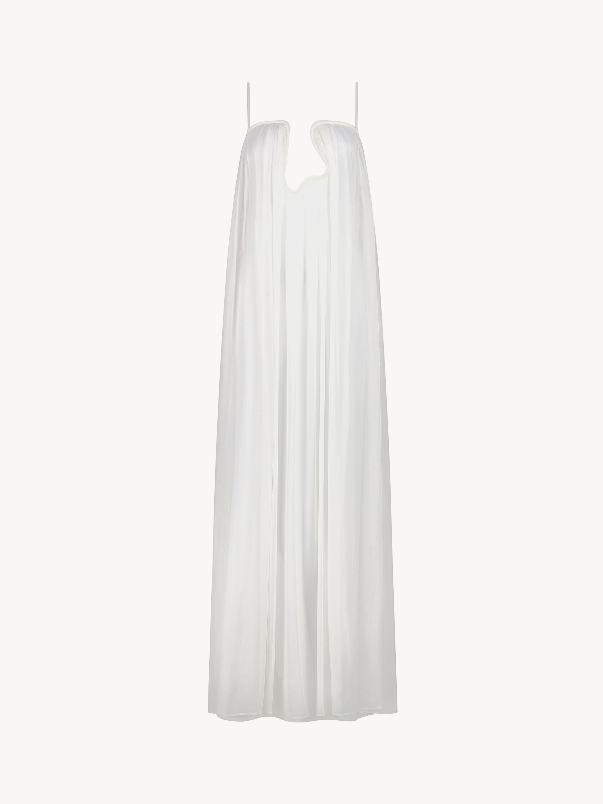 Sculptural, flowy maxi dress with a plunging chest cutout.